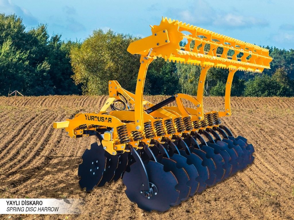 Our spring-mounted, independently suspended ACD-type mounted and trailed offset disc harrows are soil tillage machines used for seedbed preparation by breaking clods formed after ploughing and mixing the soil. After harvest, operations such as cutting and shredding crop residues and weeds, as well as breaking the surface crust layer, can be carried out with the V-type mounted and trailed offset disc harrow. Among secondary tillage equipment, its most distinctive advantage is its ability to operate within a wide range of soil moisture conditions. Product technical specifications may be modified according to customer requirements. The manufacturer reserves the right to make changes to technical specifications and standard accessories. Product images are for general promotional purposes only. The stated required horsepower may vary by ±20% depending on soil conditions and tractor specifications (e.g., 4WD). The stated weights may vary by ±15% depending on optional equipment.
