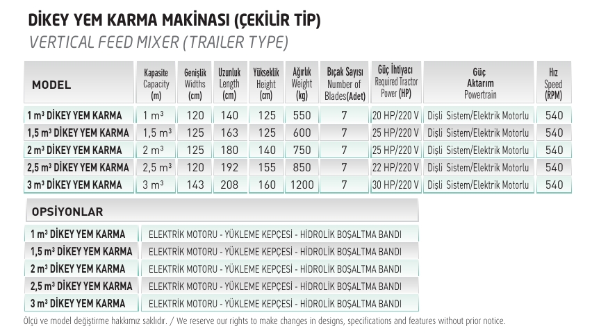 Thanks to its vertical auger design, it mixes roughage, silage, and concentrated feed evenly in a short time, increasing efficiency in animal nutrition.