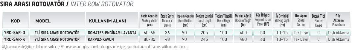 •Sıra aralarında toprağı karıştırır, ufalar ve havalandırır; aynı işlemde yabancı otları da temizleyerek bakım süreçlerini önemli ölçüde kolaylaştırır. Böylece bitkiler kök bölgesinde daha iyi oksijenlenme, daha dengeli nem tutma ve daha güçlü gelişim avantajı kazanır.